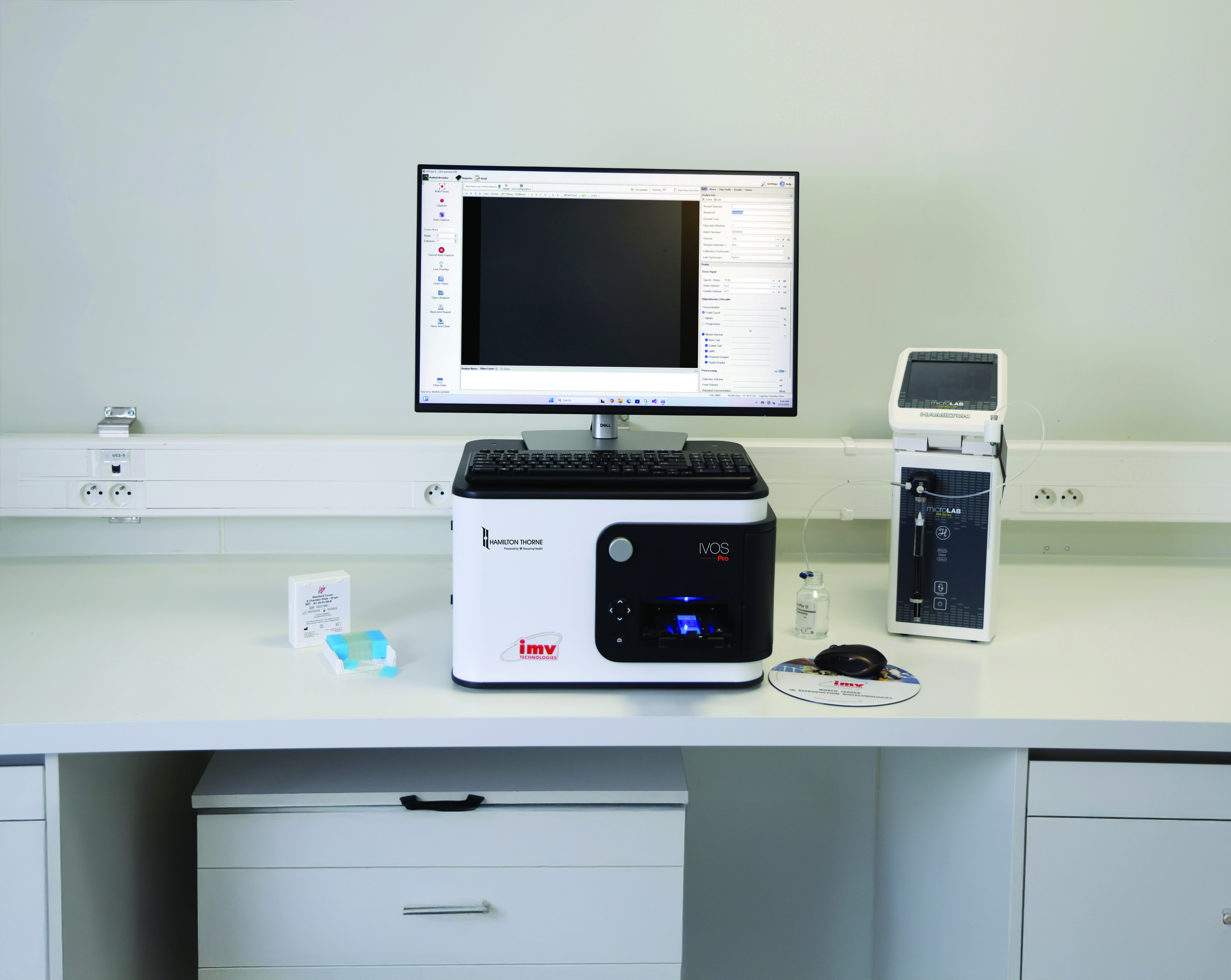 • Velocidade e eficiência incomparáveis com o mínimo de cliques, máxima automação, movimento rápido da platina e maior número de espermatozoides por campo.
